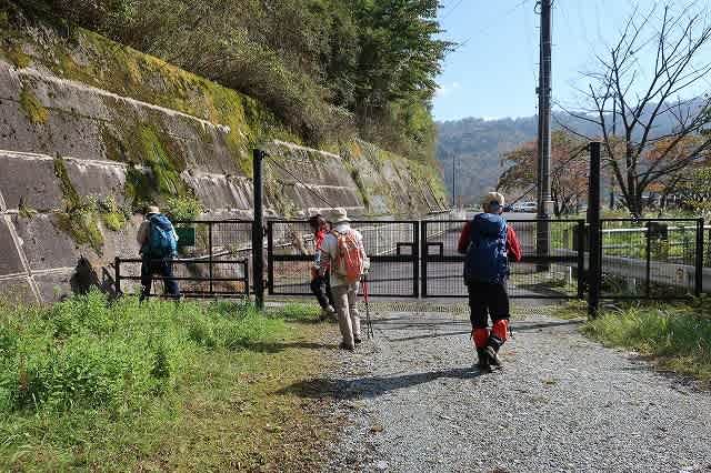 ダム湖に沿っておしゃべりしながら歩いて行くと、ほどなく『洞窟コース』に到着。道標に従って登山道へと進んで行きます。