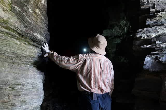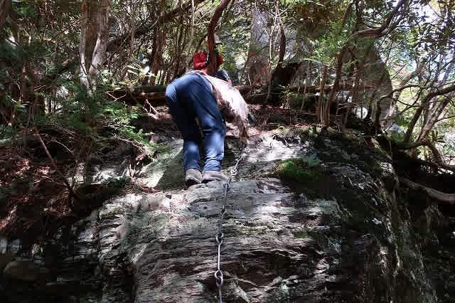 5mほどの岩に掛った鎖を登ると洞窟です。