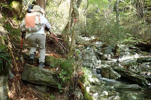 何度も沢を渡り、段差のある場所では階段を登ったりと変化にとんだ楽しい道です。