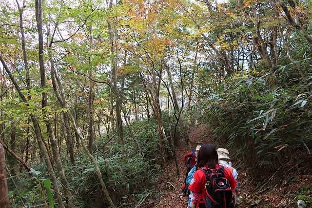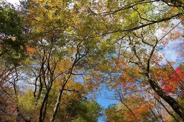 登山道から高い位置にあるのに比べて、こちらは道の両側の紅葉を楽しみながら歩いて行きます。