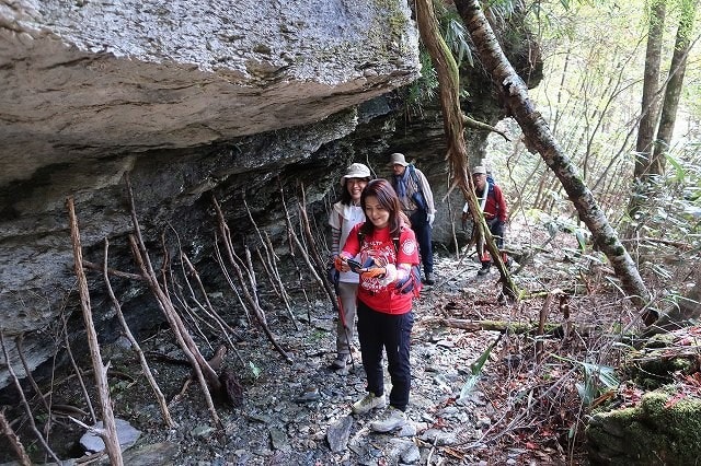 洞窟前の岩場も全員無事に降り、さらに先へと進んで行きます。