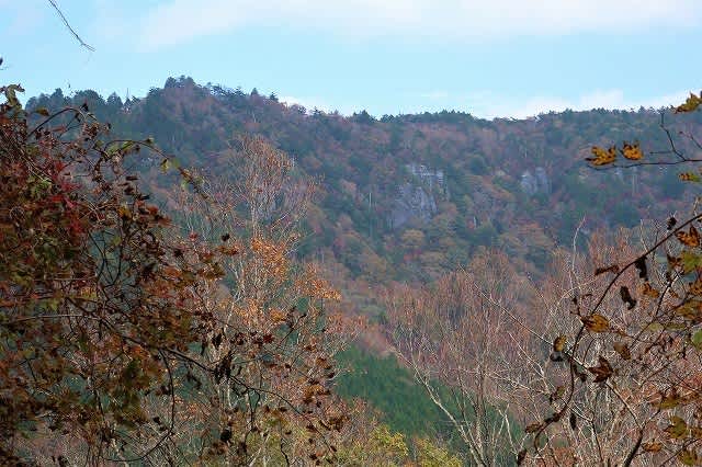 途中で木々の間から北側の『西門山』の山肌が目に入ります。