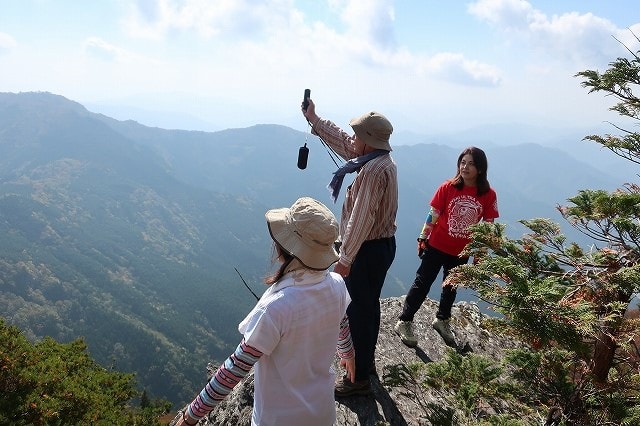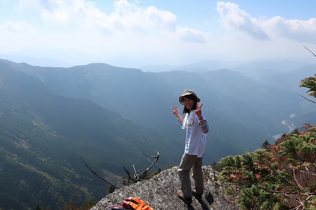 岩のテラスから登り返し、先ほどの女性に記念撮影をお願いしました。