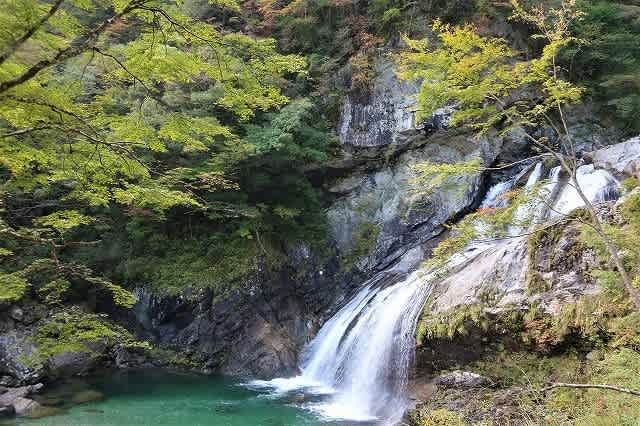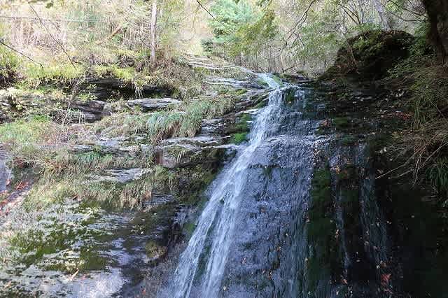 このコースでも一番大きな滝の滝口の奥は色づいていましたが、手前のモミジが色づいていたら