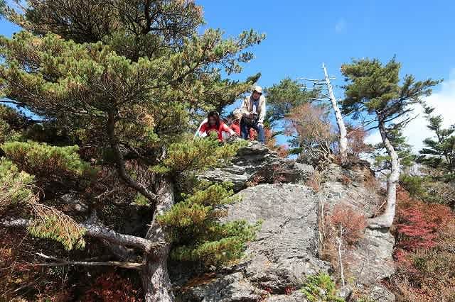 先の展望岩場まで降りてみます。岩のテラスは2段になっていて、下のテラスまで女性陣が先に下りると