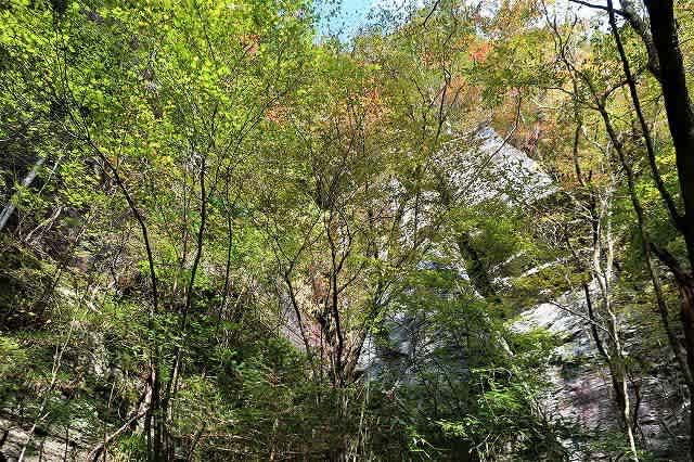 さらに何ヵ所か沢を渡渉するヶ所があり、この辺りまで来ると周りの木々の色付きも変わり始めます。