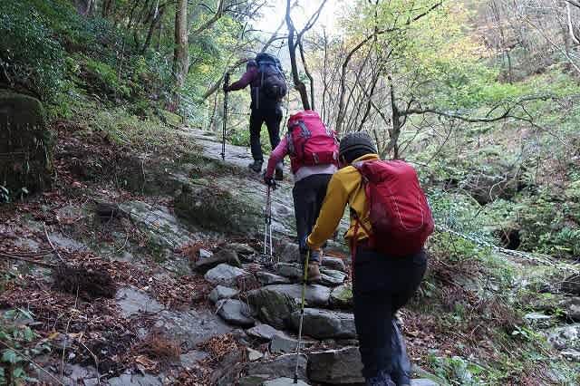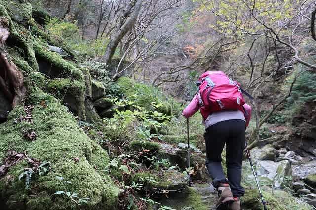 道は渓谷の川縁を歩いたり、少し上を高巻いたりしながら続いて行きます。