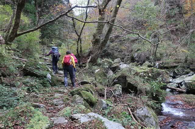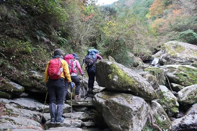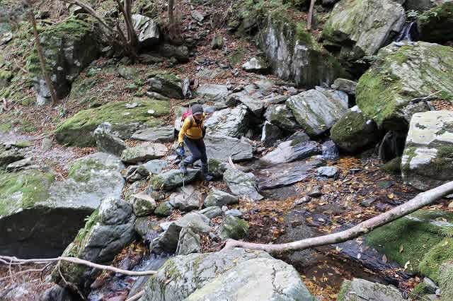 玉簾からも渡渉が続きます。渓谷には長い年月をかけて流れ出た大きな岩がゴロゴロ転がっています。