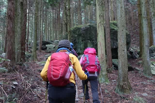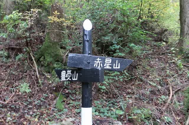 前回疲れた足で急な下り坂が堪えた豊受山への分岐を、右に曲がって赤星山方面へと向かいます。