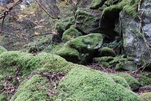 道の脇に苔岩が現れると千丈滝までは後少しです。