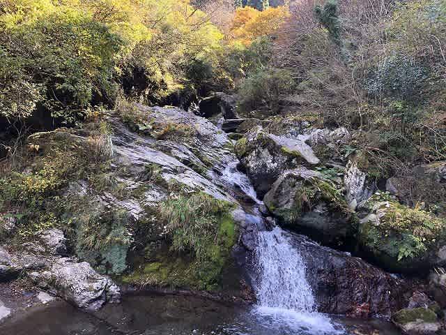 折り返しての帰り道も渓谷のモミジと水の流れ、そして滝を眺めながらのんびりと下って行きます。