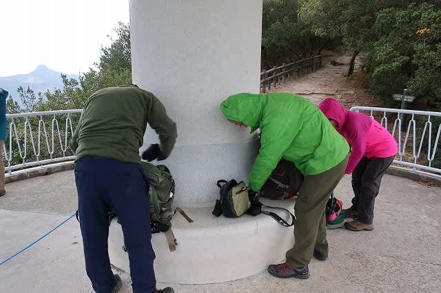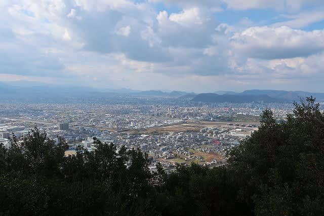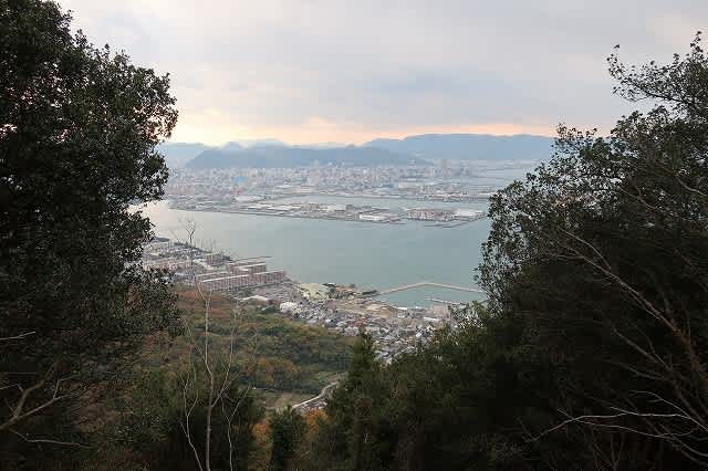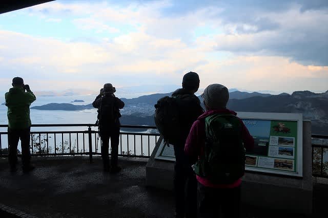 冠ケ嶽からは東に五剣山から西は高松市内が見渡せます。曇り空の下吹き上げてくる風が冷たく、