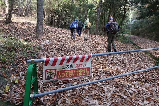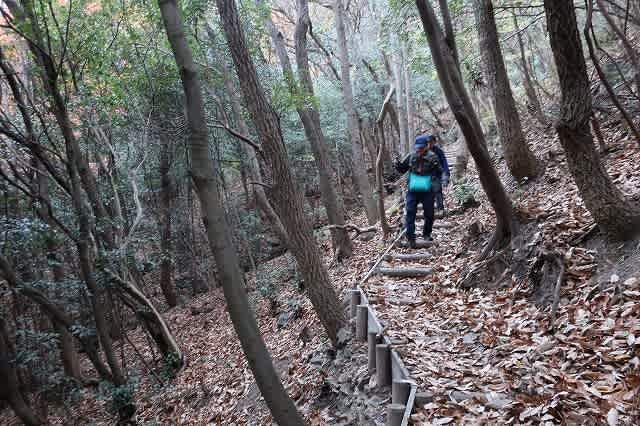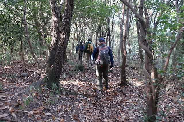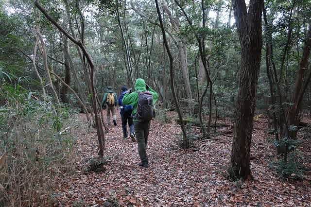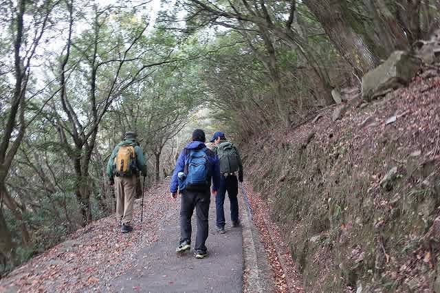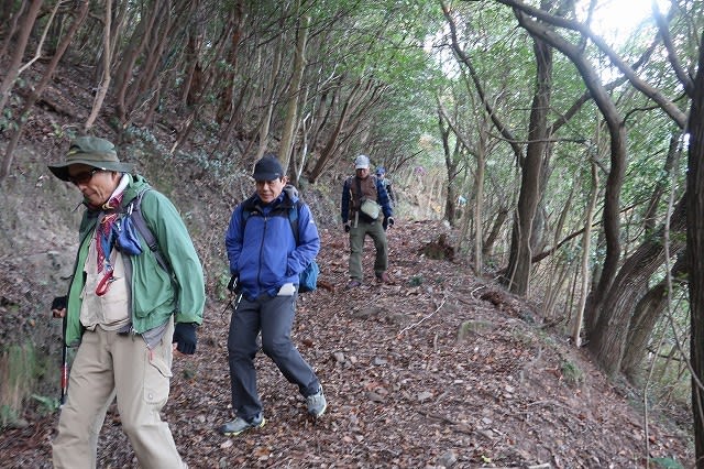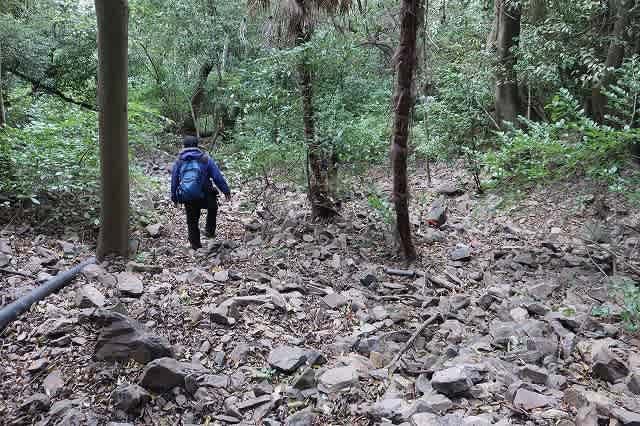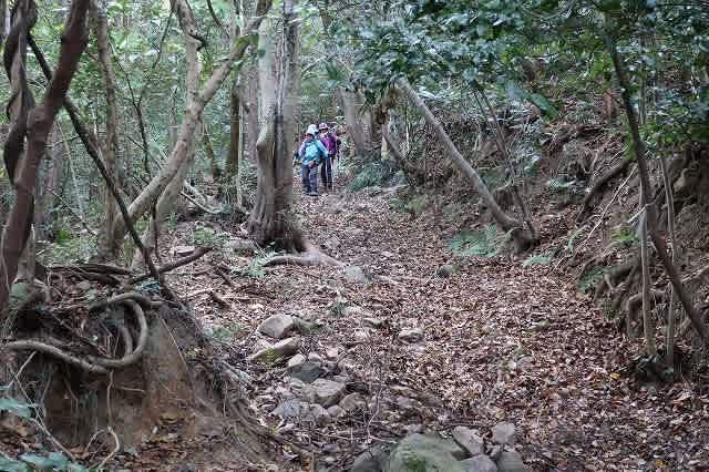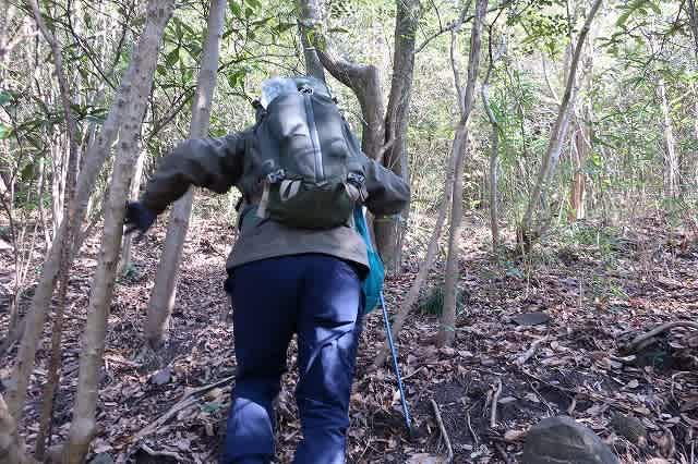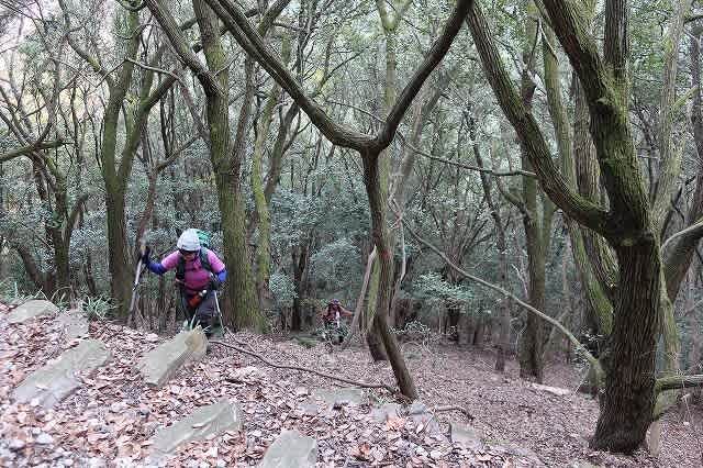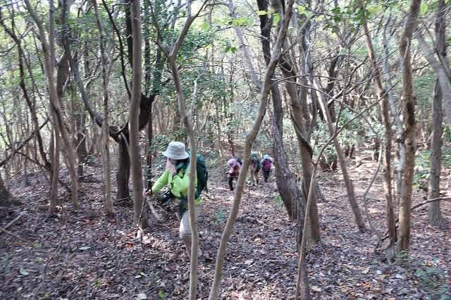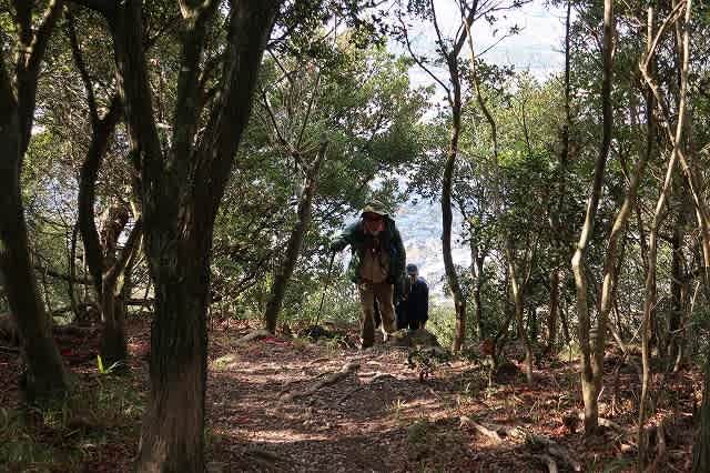 神社から冠ケ嶽の直下まではほぼ直登。次第に傾斜もきつくなってきます。ウバメガシの落ち葉が足を滑らせます。