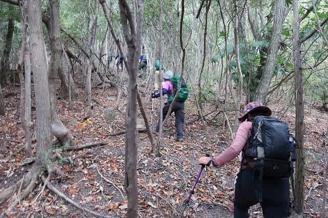 屋嶋城跡からはまた直登が始まります。さっきまで肌寒かったからだが直ぐに暑くなってきます。