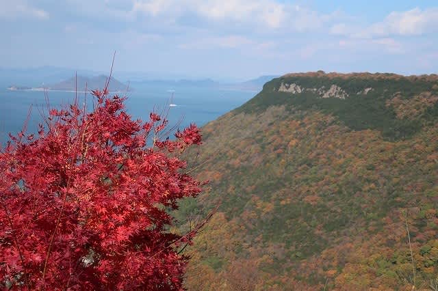 やはり眼下に広がる眺望でした。屋島の紅葉は山頂も山肌も今がピークのようで、