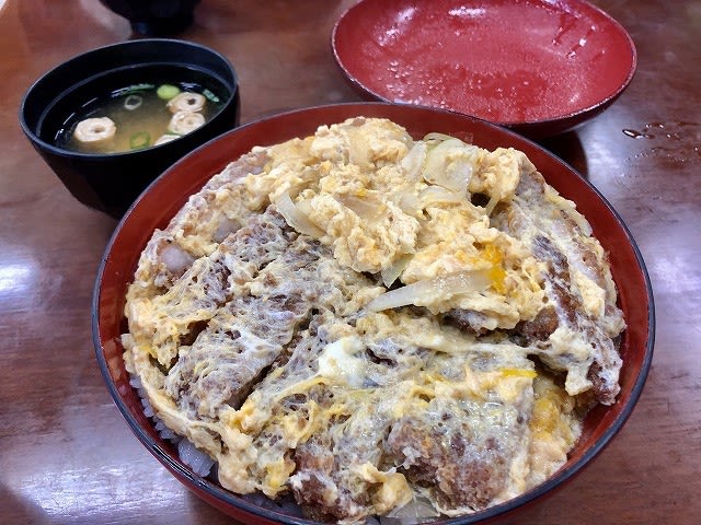 とんかつが二枚載ったかつ丼はボリューム満点。あの田中陽希さんも立ち寄った時は、