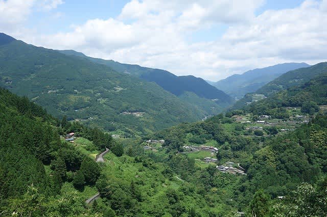 草道を過ぎると山あいの集落を眺められる場所に出た。