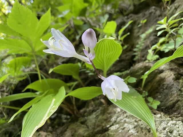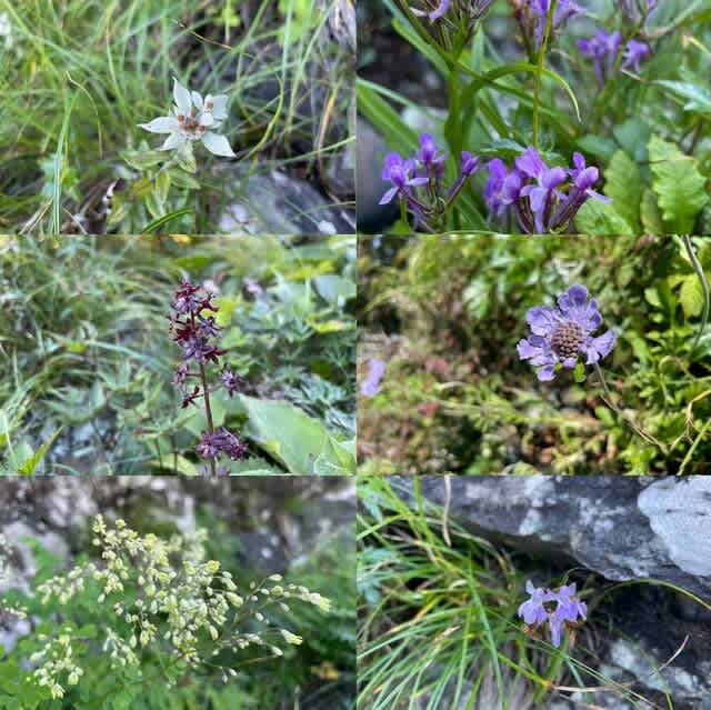 岩肌の日陰で涼みながら、正面に見える山々にため息をつき、足元に咲く花を愛でながら暫し佇む。