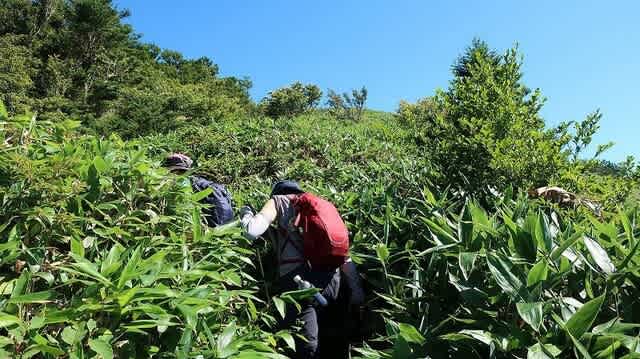 踏み跡はしっかりしているが笹の勢いが強く、場所によっては背丈ほど伸びている。
