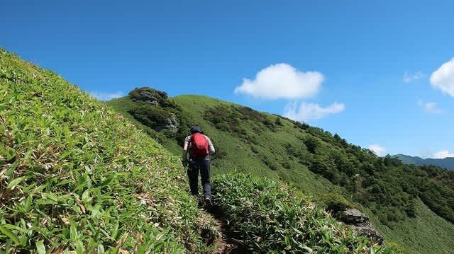 桑瀬峠からはまたしばらくは樹林帯の中と笹道が、交互に続いて行く。