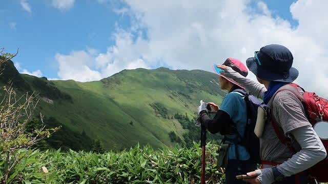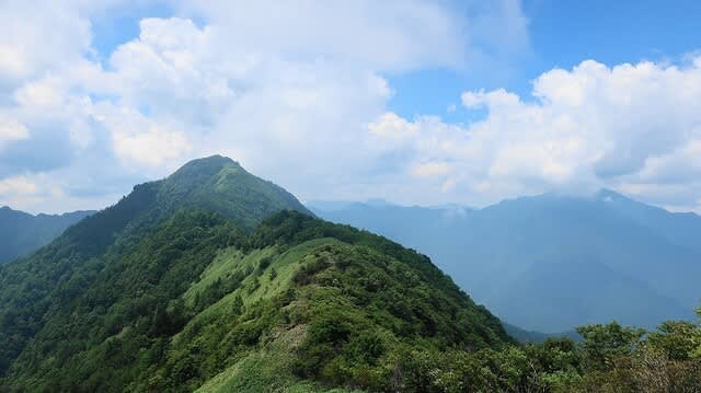 今度は北東に先々週歩いた冠山から平家平へと続く稜線が見え始める。