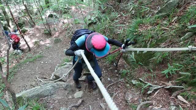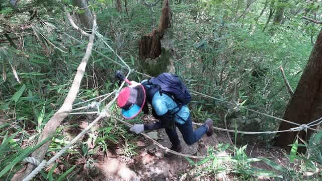 急坂のロープ場もなんのその。二人は快調に下って行っている。