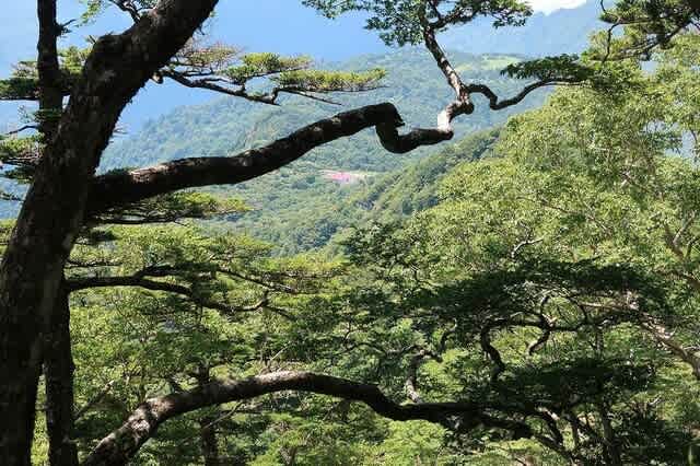 途中で一ヵ所立ち止まって先ほど降りてきた展望所辺りが見えた。