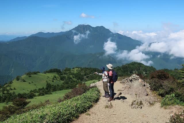 以前にWOC登山部で土小屋から石鎚山に登った時に、途中で何度もこの瓶ケ森を指さして