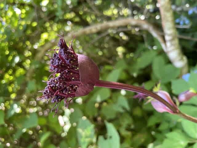 先週の寒風山で見かけた赤紫色の花を見て『変わった花。何て云うんでしょう』と奥様たち。