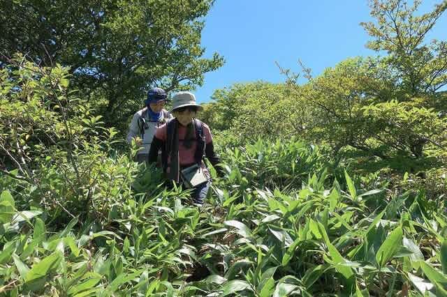 奥様達も最近続いている笹原の足元が見えない道も、随分と上達して苦も無く降りてくる。