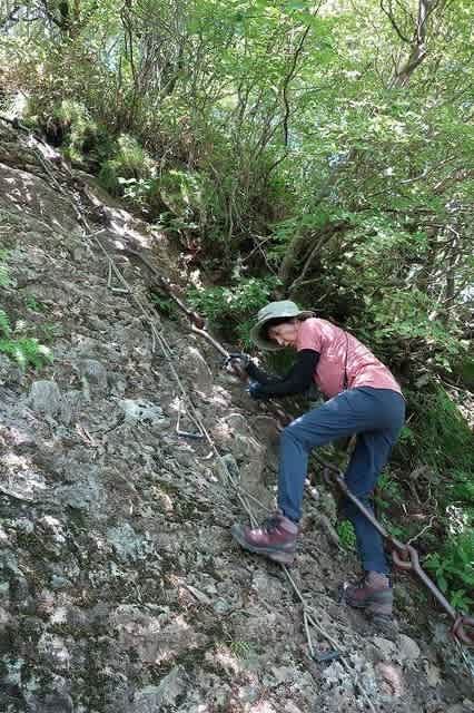 ここの鎖は石鎚山の鎖と比べて、ゆらゆらせず、ほぼ固定されているので、