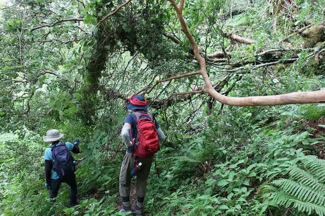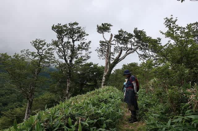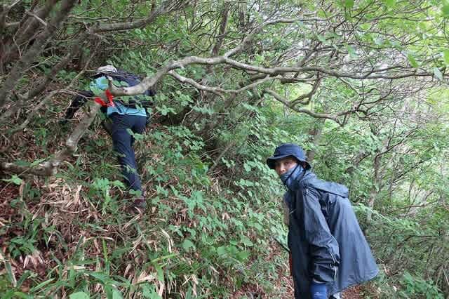 山頂付近の笹原が終わるとよさこい峠に近づくにつれ、笹の勢いが強くなってきた。