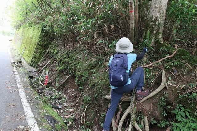 よさこい峠からは更に車道の脇に登山道が続いて行く。少し分かりづらいが、道の脇に