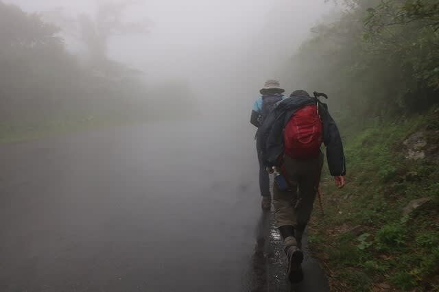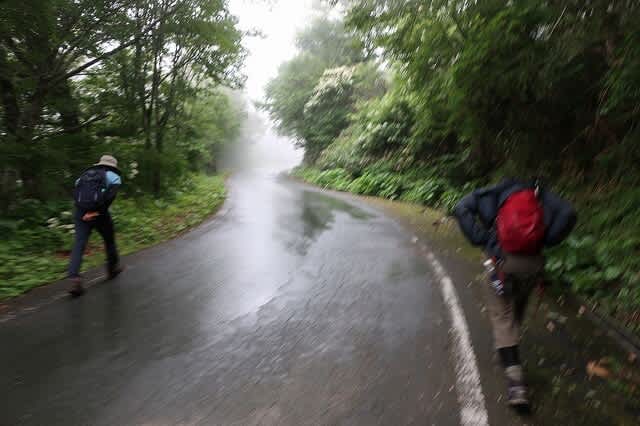 よさこい峠からは車道を戻って行くことにする。次第に雨が降り始め、