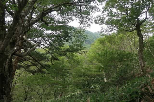 ただ途中から見えた岩黒山までは結構な高度差がある。しかも道なき道。