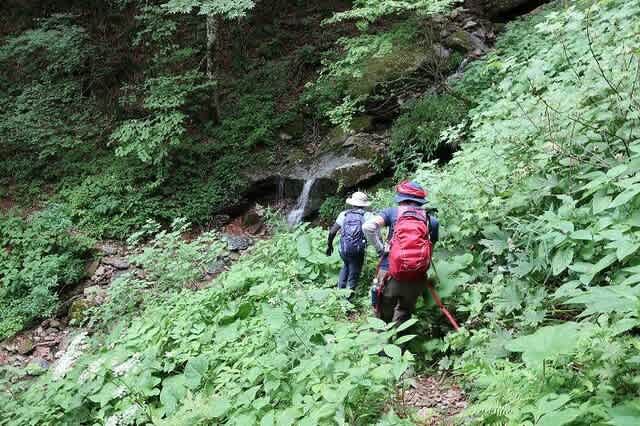 水が流れていなければ登れないこともない?、急な笹薮よりはマシかな?などと考えてみたが、
