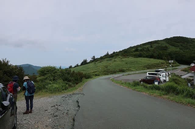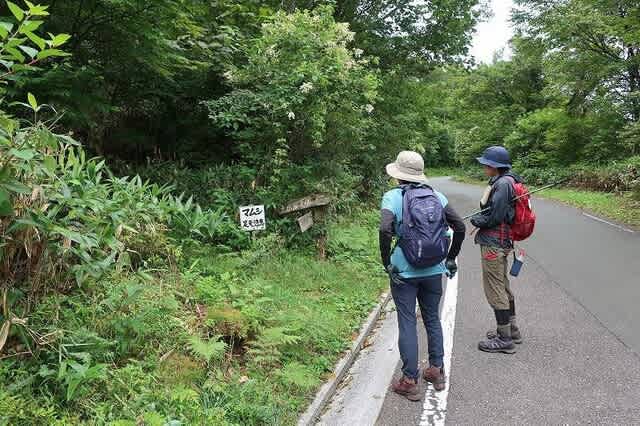 ここから登山道はUFOラインに沿う形で土小屋まで続いて行くが、スタートからは直ぐに車道に飛び出した。