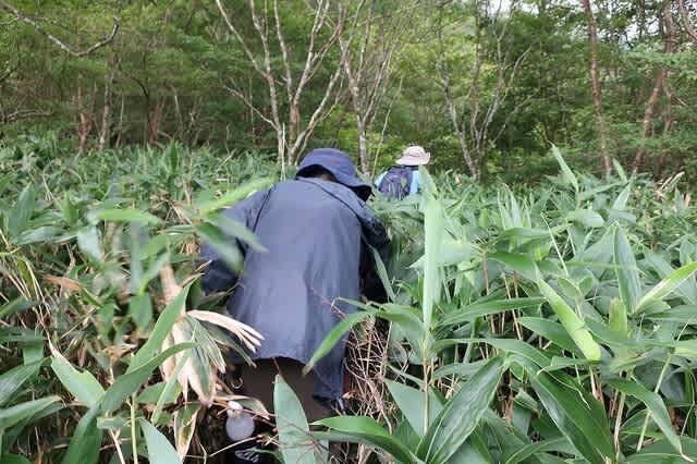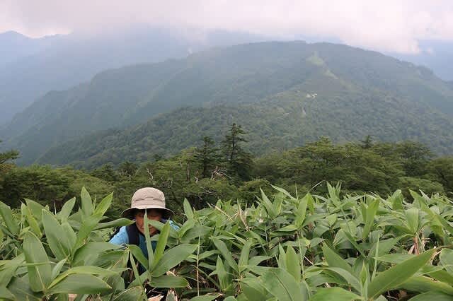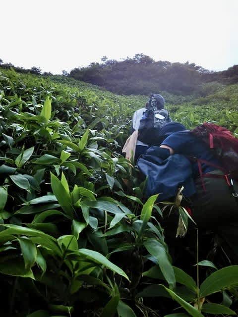 ここからは笹に埋もれながらの行軍となっていく。背丈を越える笹の中を両手で笹を掴んで、