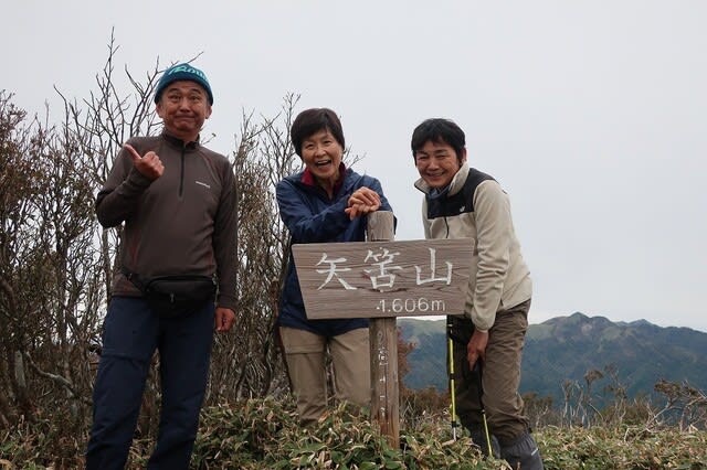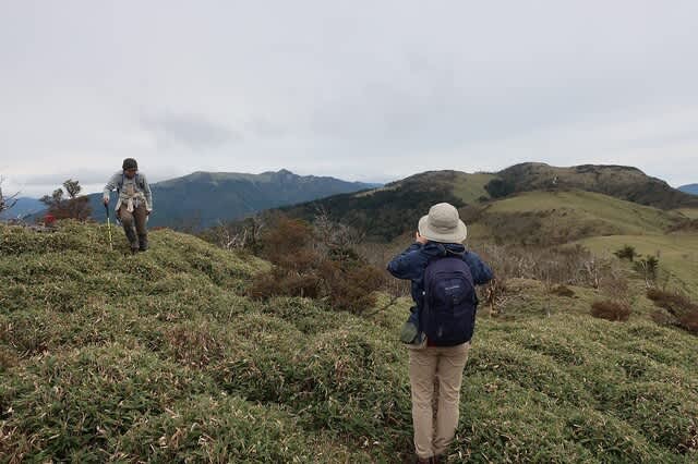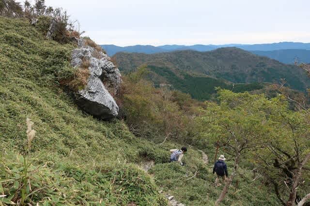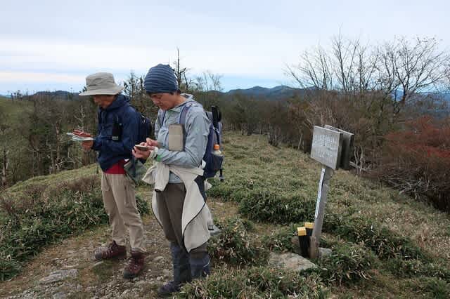 奥様たちは『石鎚山が見える!』と騒いでいる。そして反対側にはこれも同定しやすい天狗塚と牛の背。