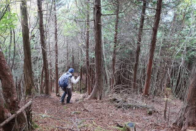 モミ千本の分岐から右に折れて往路と違う道を下って行く。原生林コースと同じように
