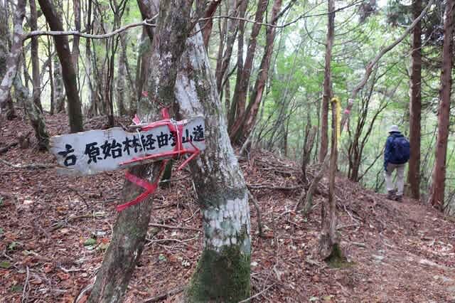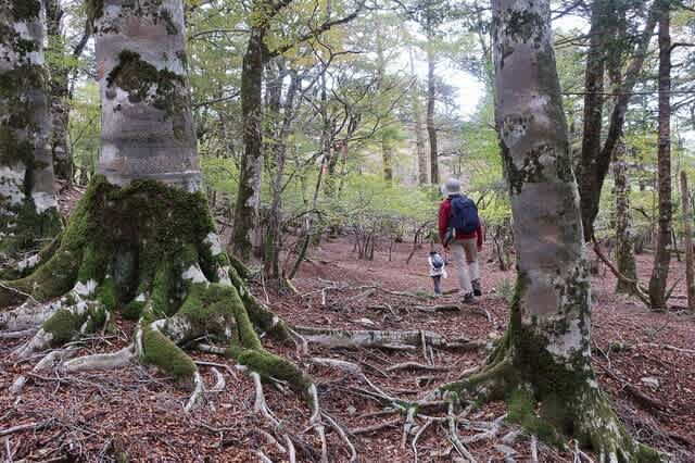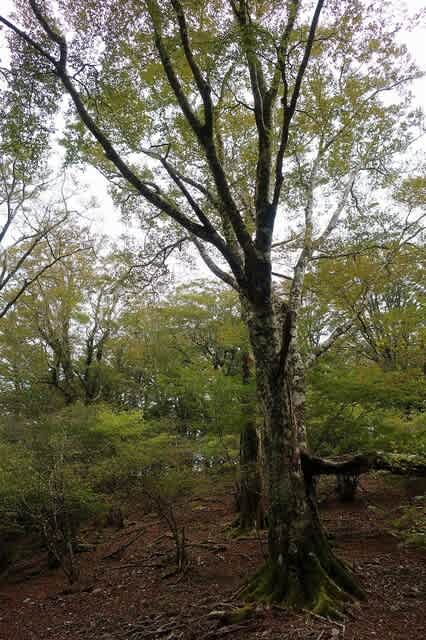 その道標に従って分岐を右に折れブナやミズナラの原生林へと進んで行く。