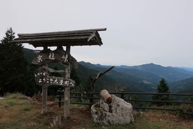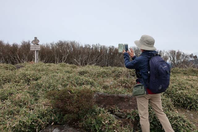約2時間で京柱峠に着いた。やはり空一面雲に覆われていたが、幸い風はほとんどなく