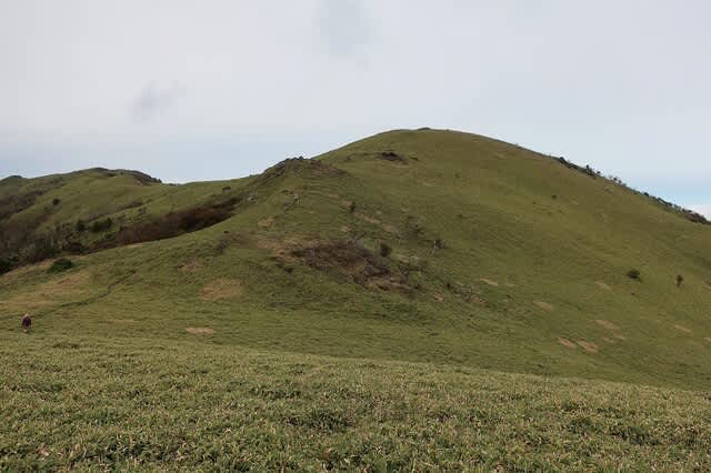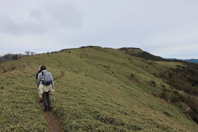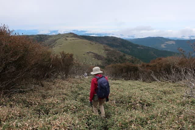 ニセ小桧曽山からは広い尾根の笹原道が続いていく。今日は天狗塚が随分近くに見える。