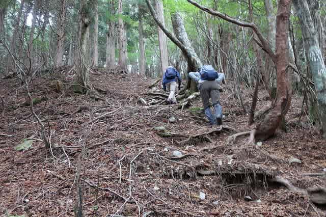 打合せでは20分ほど下った所で引き返すことになっていたが、樹林帯の中では