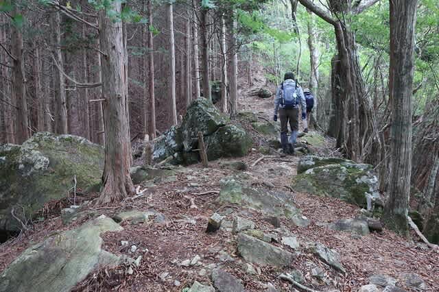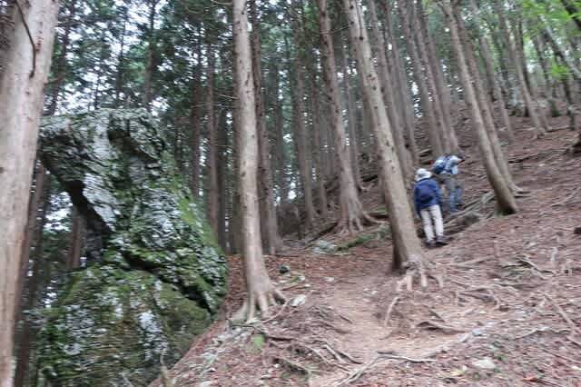 しばらくは杉林の中を歩いて行くと、直ぐにこのコースの名物?の三段急登となる。