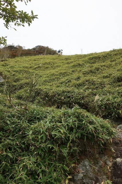 モミ林を抜けると足元に笹が目立ち始め、小桧曽山との分岐の手前の笹原に出た。