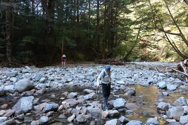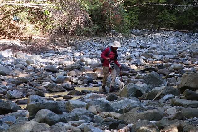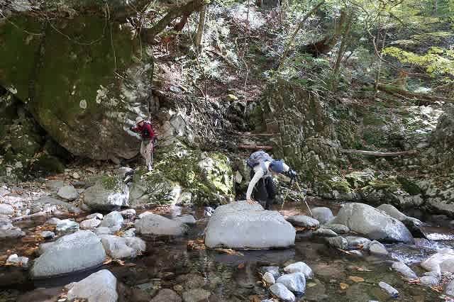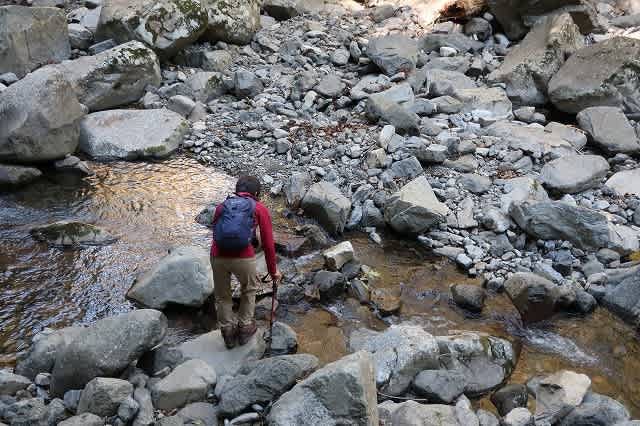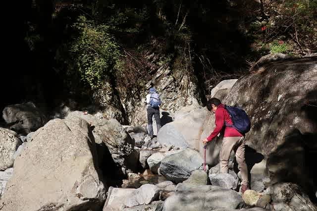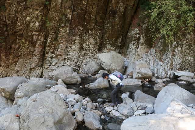 今日四回目の渡渉。次第に渓谷の岩が大きくなっていく。