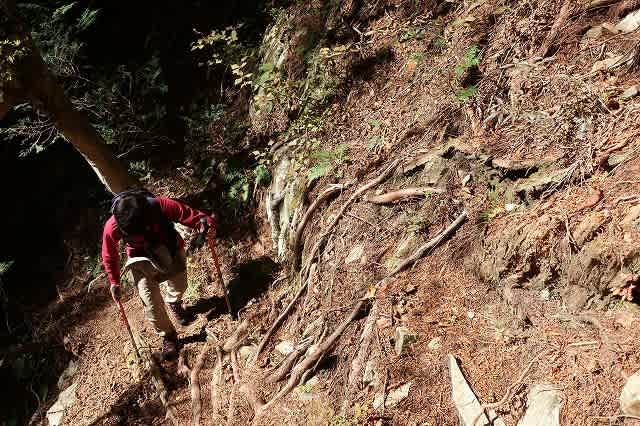 ここまで左岸は比較的緩やかな道だが、右岸の高巻の道はやはり足元が悪い。