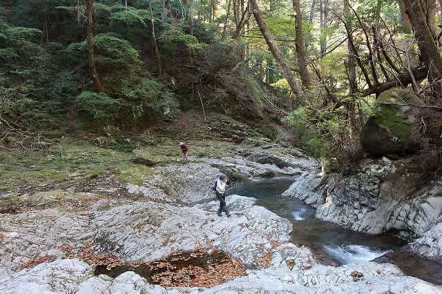 300mほどの標高差を約30分、下り続けると面河渓の広い河原に着く。