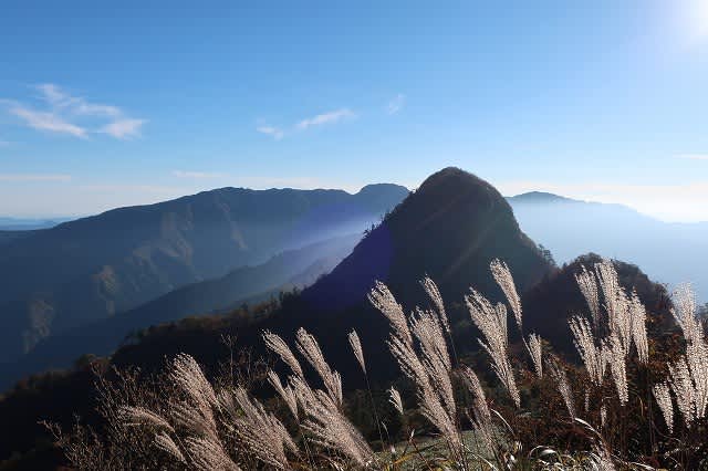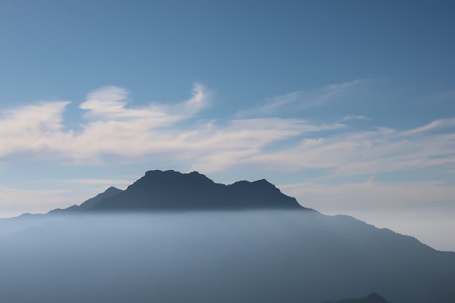 石鎚山もこちらか見ると、見慣れた山容と全く違う形をしている。
